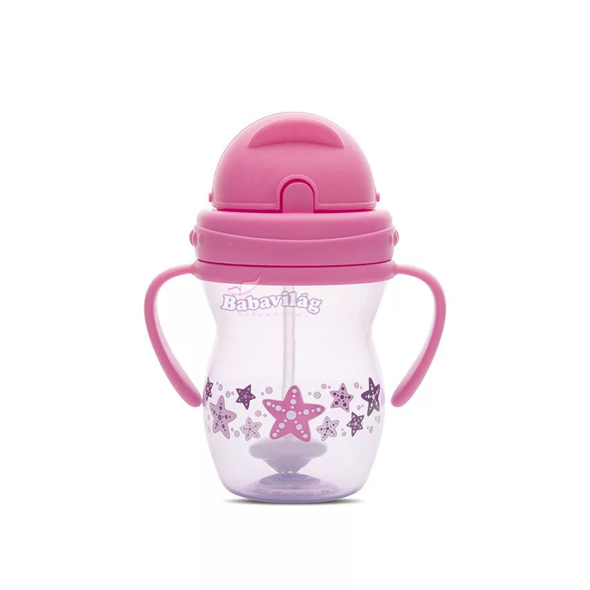 Baby Care szívószálas itató fogantyúval 275ml - Pink/Purple