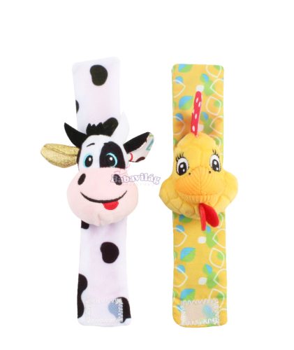 Az egyik karkötőt koala, a másikat mosómedve díszíti, és ez a bájos duó egyszerre vagy külön is használható, kiválasztva azt a csörgőt, amelyik a babát pillanatnyilag jobban érdekli.