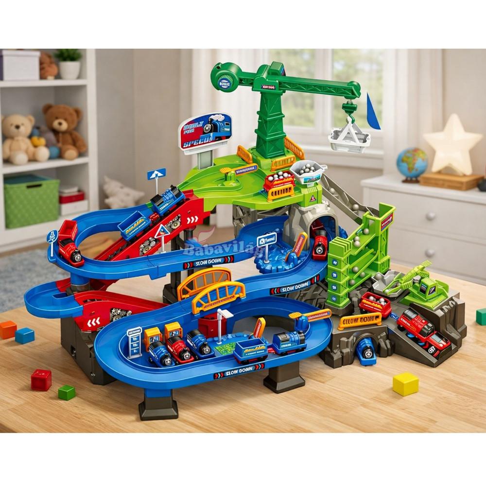 Az elektromos mászási mechanizmus lehetővé teszi a vonatok számára, hogy önállóan magasabb szintre emelkedjenek, míg a speciálisan tervezett kanyarok és leereszkedések zökkenőmentes és vonzó utazást biztosítanak. További vonzerőt jelent a forgó toronydaru egy töltési emelő funkcióval, amely lehetővé teszi a tárgyak szintjének szállítását és a kéz-szem koordinációjának fejlesztését. A készlet tartalmaz egy üzemanyagtöltő állomást, alagutat, rámpákat, bányaelemeket és nyomokat, amelyek egy barlangon keresztül vezetnek, lehetővé téve a gyerekek számára, hogy különböző tematikus jeleneteket játsszanak.
