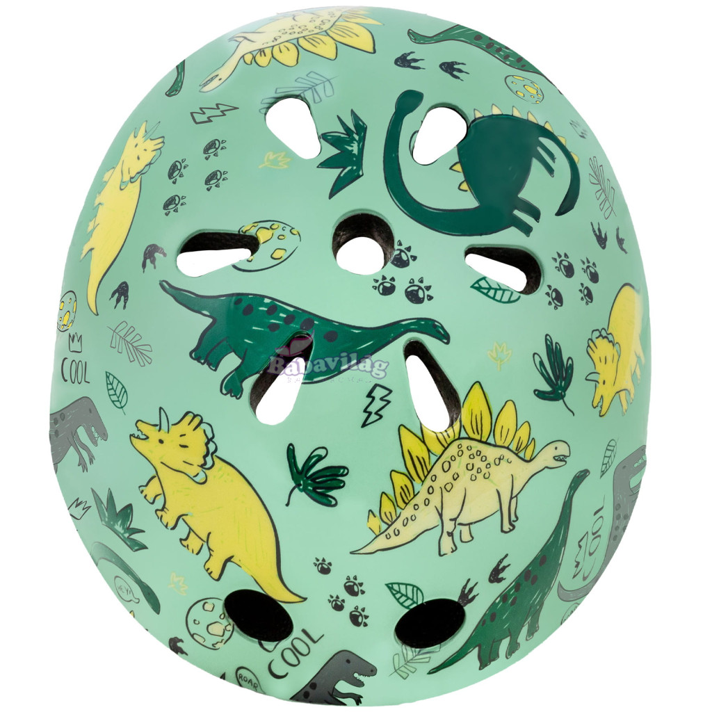 A dinoszauruszok vidám mintája azonnal felhívja a figyelmet, és a sisakot a kerékpár vagy a robogó minden szórakozásának kedvenc kiegészítőjévé teszi. A szép dinoszauruszok mosolyt csalnak, és arra késztetik a gyerekeket, hogy maguk is viseljenek sisakot, mielőtt kimennek.