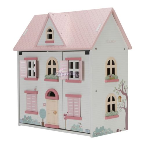 Ezzel a klasszikus Little Dutch babaházzal garantált a szórakozás. A masszív kialakítású, kék zsalugáteres babaház rózsaszín teteje levehető a jobb hozzáférhetőség érdekében. És egy kis meglepetés! A tető valójában a ház kertje. A levehető tető belső oldali festése egy kert, mely illeszkedik a házhoz. A ház 19 db bútorral és számtalan matricával kerül szállításra mellyekkel egyedivé tehető a belső tér.