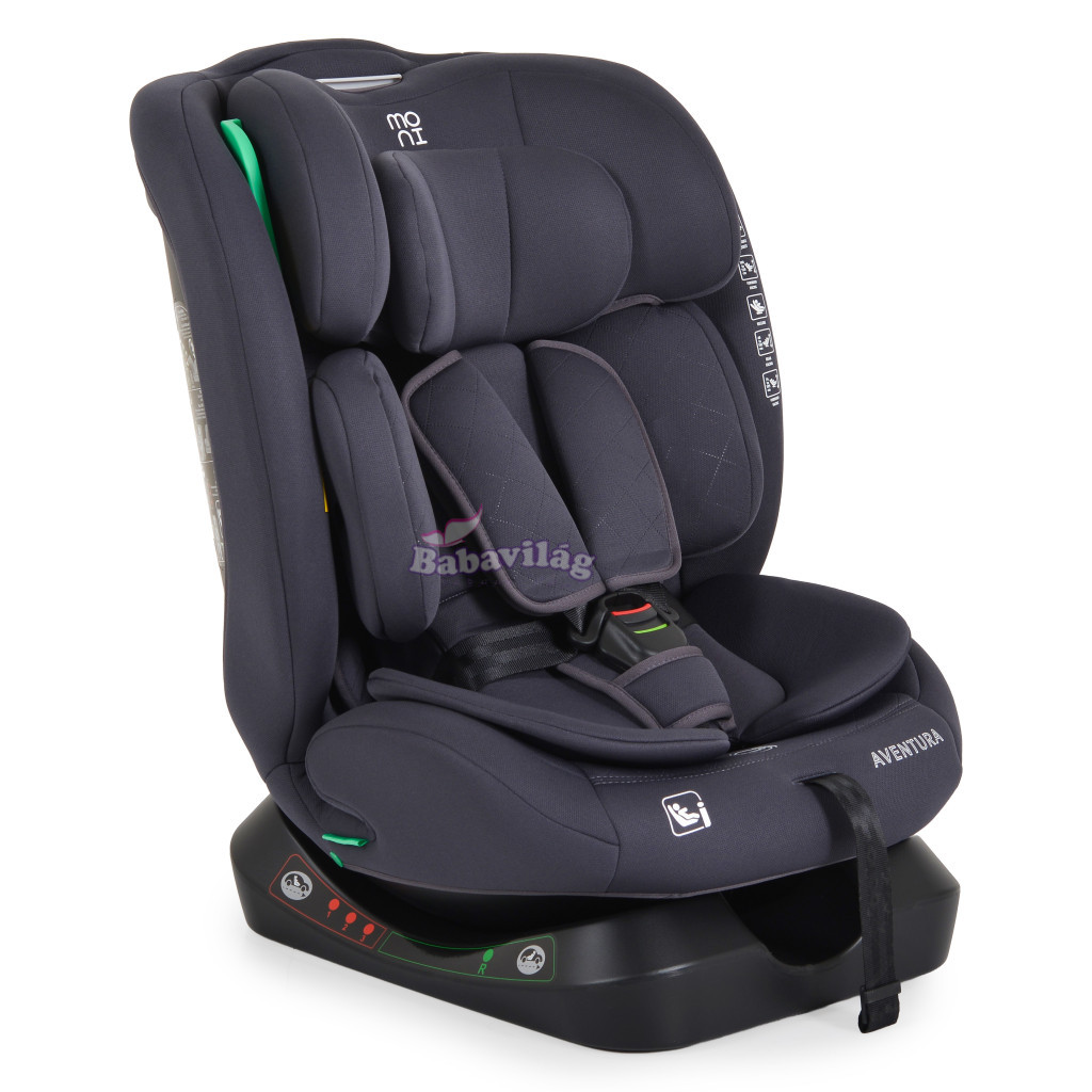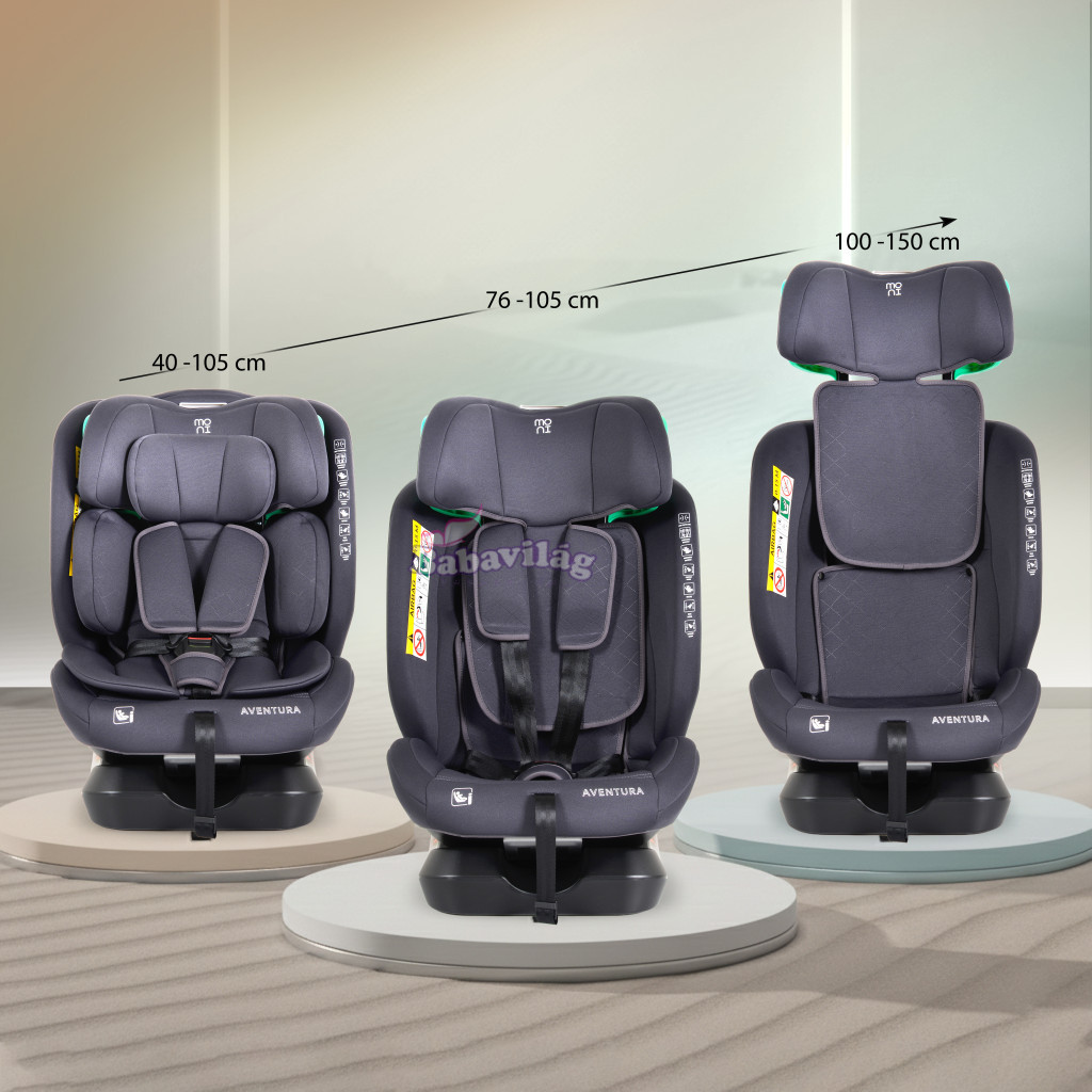 Moni Aventura autósülés úgy lett kialakítva, hogy minden utazás során magas szintű biztonságot, kényelmet és alkalmazkodóképességet biztosítson. Az R129/i-Size szabvány szerint jóváhagyott termék 40-150 cm magas gyermekek számára alkalmas, és a gyermek életkorának és fejlettségének megfelelően rugalmasan felszerelhető.