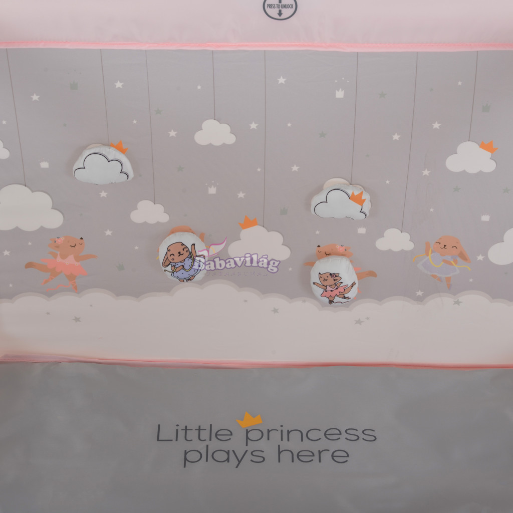 A járóka négyzet alakú, biztonságos és kényelmes játszóteret biztosít a kicsik számára, 6 támasztólábbal, kicippzárazható oldalfallal.