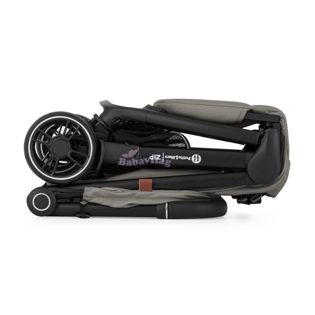 A ZIP összecsukva kézipoggyász méretű, így gond nélkül felvihető a repülő fedélzetére vagy elhelyezhető egy kisebb autó csomagtartójában is. A mindössze 7 kg-os súlynak köszönhetően könnyen hordozható egy kézben, miközben a másikkal a gyermeket vezeti.