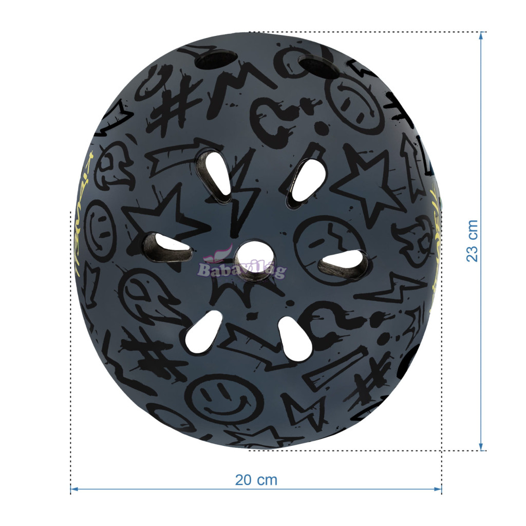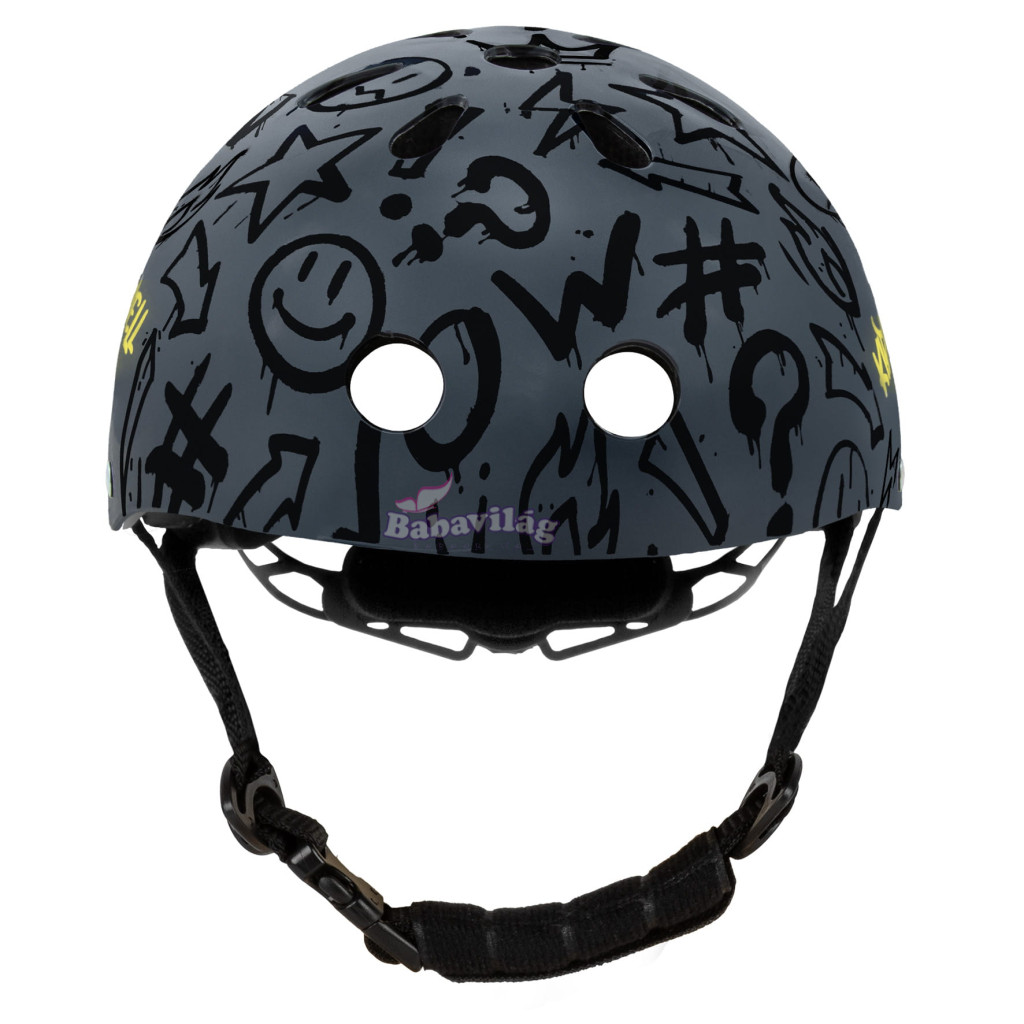 A modern design graffiti motívummal dinamikus, városi karaktert kölcsönöz, amely különösen vonzó a kifejező színek és az eredeti stílus fiatal rajongói számára. A merész kialakításnak köszönhetően a sisak kiemelkedik a többiek közül, és a gyerekek lelkesen nyúlnak hozzá, mielőtt bármilyen szabadtéri tevékenység lenne.