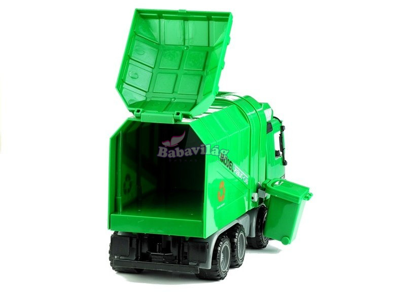 A zöld kukásautót lenyűgöző nagy mérete, valamint a valódi, teljes méretű járművekre emlékeztető kialakítása jellemzi.